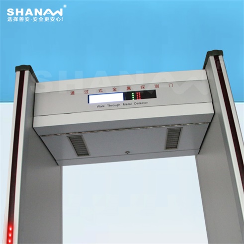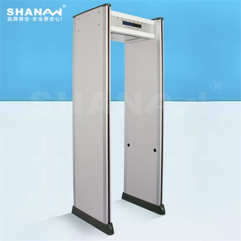通過式金屬探測器,門中建立有電磁場,當人體攜帶金屬物品通過時能產生報警的裝置,能準確探測到人身上或手提包箱中攜帶的金屬物品或含有金屬的物品,如各種管制刀具、武器、金屬制品、電子產品及其他含有金屬的物品等,用來進行安全檢查、防偷竊檢查的一種有效工具。能有效避免傳統人工搜身檢查帶來的人權糾紛.