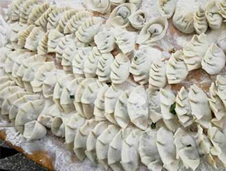 上午11時許,“高手們”便來到餐廳開始準備工作。一切就緒后,大家分別“塑造”出各類帶有家鄉風格的餃子。每位同事包出的餃子